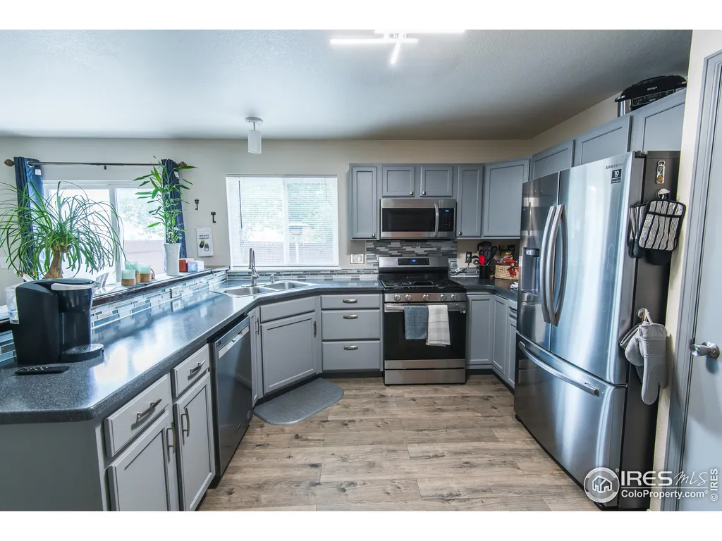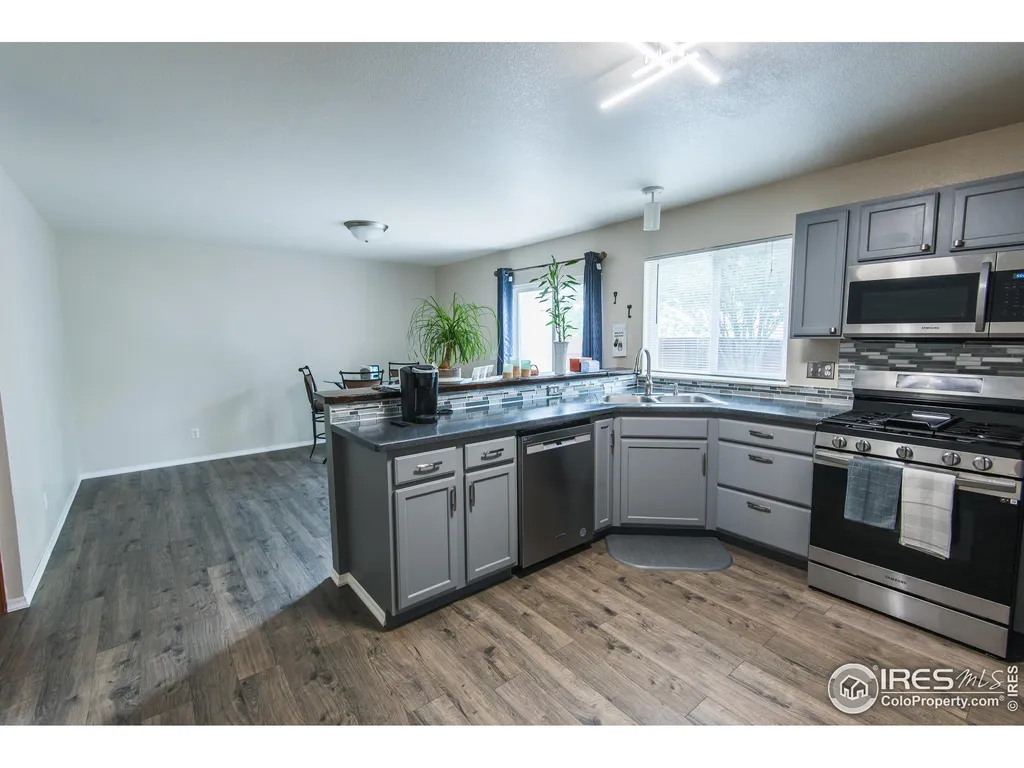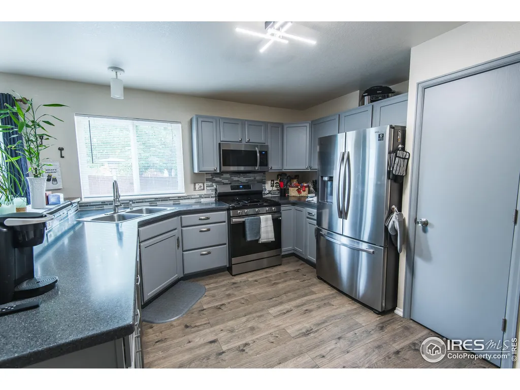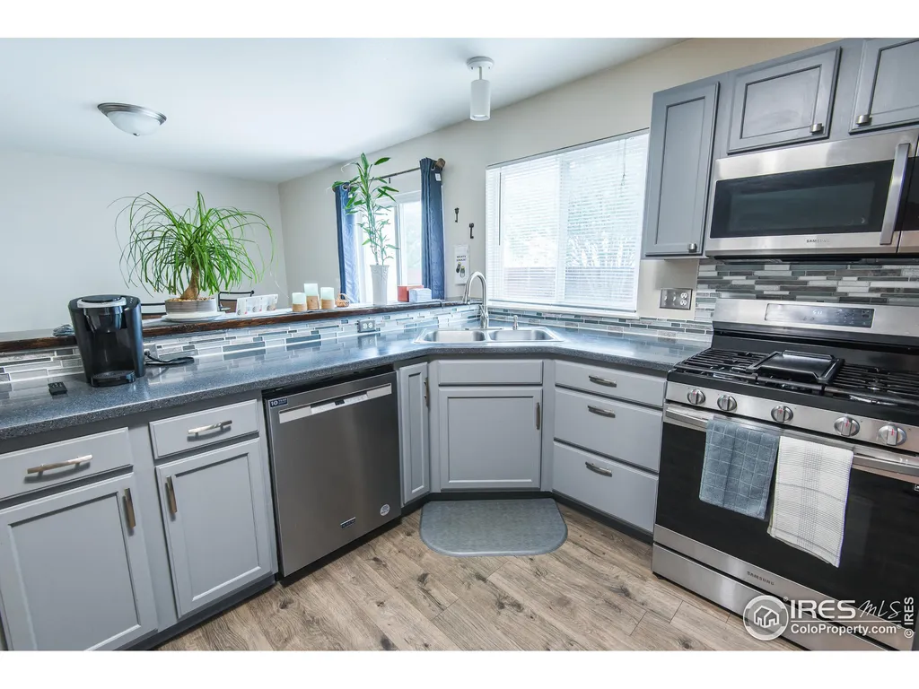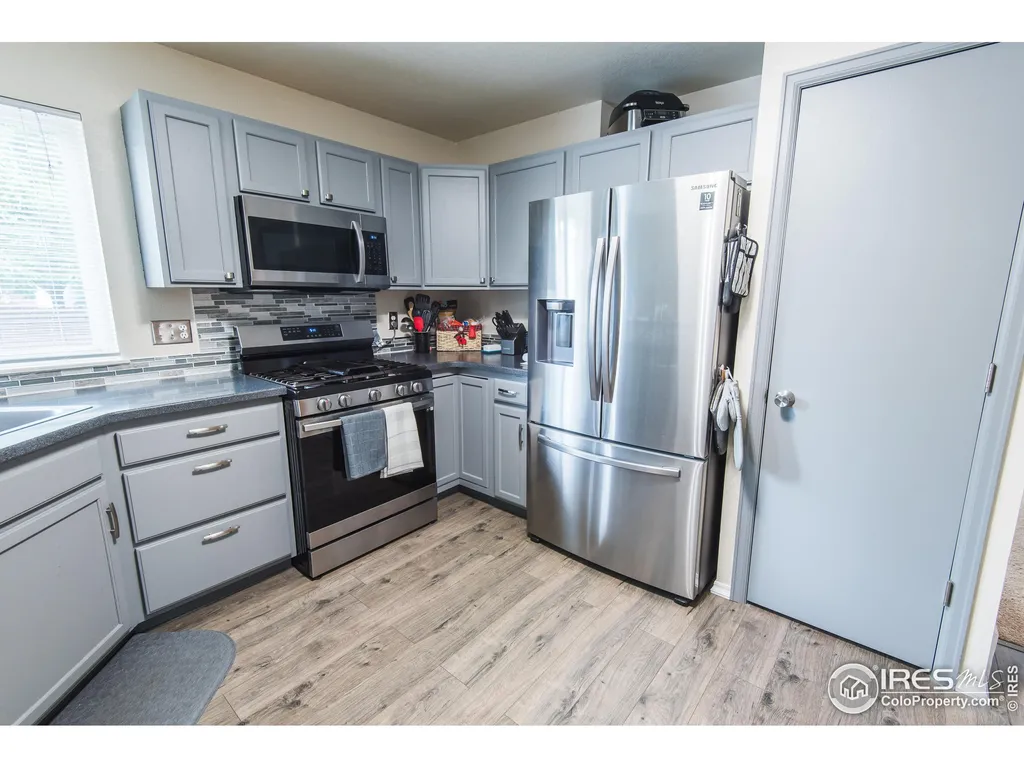 Discover this beautifully remodeled 3-bedroom duplex, featuring modern updates and stylish finishes throughout. The home boasts new appliances, including a gas stove, along with upgraded kitchen counters and flooring. Its open floor plan seamlessly connects the kitchen to the living room, creating an inviting space perfect for everyday living and entertaining. A separate dining room enhances the home's 1,580 square feet of living space. Upstairs, you'll find all three bedrooms, including a spacious primary suite complete with a private full bathroom and a walk-in closet. The outdoor space is thoughtfully landscaped for low maintenance while still providing ample room to enjoy Colorado's beautiful summer and fall seasons. Whether you're entertaining in the backyard or unwinding on the charming covered front patio, this home offers comfort and relaxation. Additional features include an enclosed wood-fenced yard for privacy, a sprinkler system in both the front and back yards, and a newly painted interior and exterior. The attached two-car garage has been updated with a brand-new door, and the extended driveway offers extra parking. Conveniently located near shopping, recreation, and with easy access to Highway 287 for seamless travel north or south out of Loveland. As a bonus, the seller is offering a one-year home warranty upon closing! Don't miss this incredible opportunity-schedule your showing today!