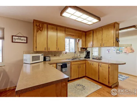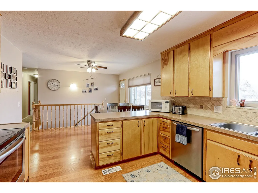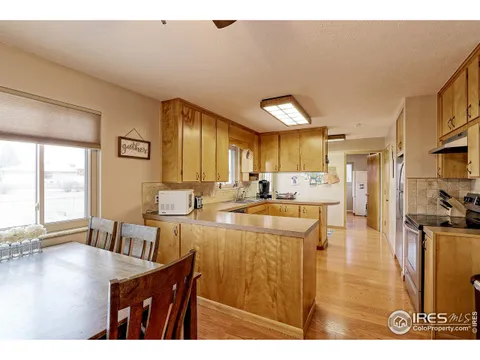 Fantastic Brick Ranch Style Home which Backs to Private 8 Acre Open Space Park. This Spacious Home Features, Updated Baths, Kitchen offers Newer SS Appliances with Bonus Utility Room which Features, Built in Cabinets, Extra Storage, Convenient Main Floor Laundry, Includes Washer & Dryer. Bathrooms have all been recently Updated, Spacious Family Room with Wood Burning Stove, Heats entire Home. Extra Storage with the added Utility Shed. Great Set-Up with Extra Concrete Slab for RV/Camper Parking, & Heated 2 Car Garage, Additional Upgrades include Newer Champion Vinyl Windows in Upstairs Level with 5 Newer Vinyl Windows in the Basement, Newer 50 Gallon Hot water Heater, Radon Mitigation System Installed. Conveniently located to Shopping, Parks, & Schools. Minutes from Downtown Loveland, Near Maiana Butte Golf Course & Long Hagler State Wild Life Area & Much More!