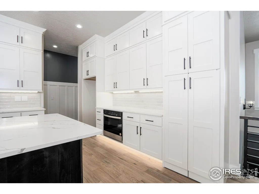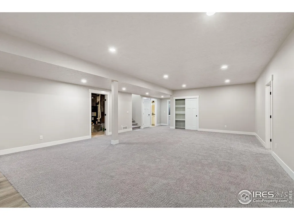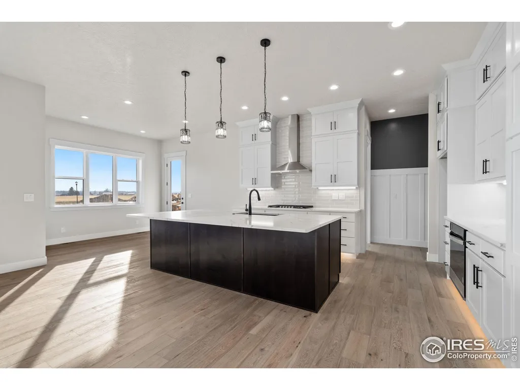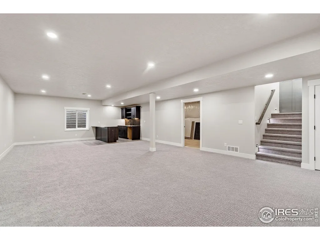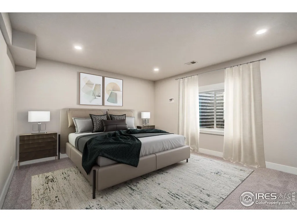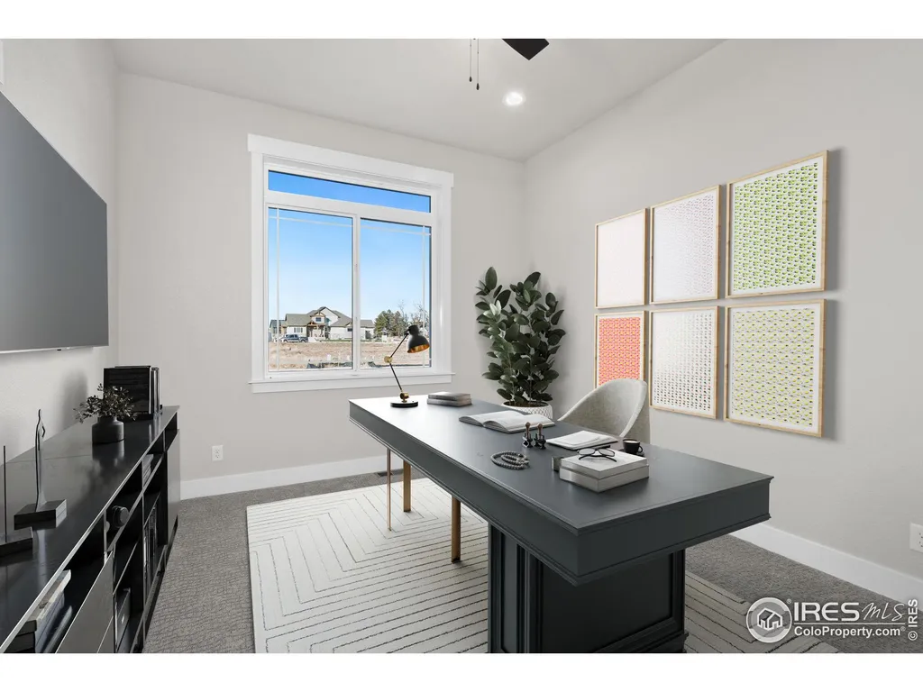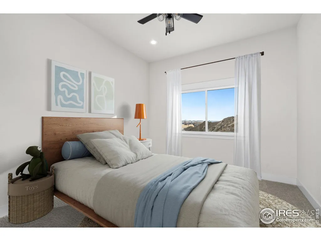 Open the door to The Remington by Pagel Contracting, a meticulously crafted ranch home in Berthoud's premier neighborhood Harvest Ridge. Too many features to list, so set up that showing! You will love the 10' ceilings and abundance of windows allowing that Colorado sunshine to light up the vast great room, kitchen and dining area. Arrange your decor to make the floor to ceiling tile LED fireplace surround the perfect focal point. Cook up a storm or have the meal catered, these custom kitchen cabinets go all the way to the ceiling making sure you have enough room for all your culinary wares. Recessed lighting/outlets and appliance placement provides a sleek design and allows a plethora of countertop workspace. While your favorite people are gathered around the HUGE quartz island, they can charge their devices from the super cool pop-up outlets. Don't forget to look for the hidden pantry! Retreat to your suite adorned with custom batten accent wall. Primary bath has 3/4 shower with poured pan base and bench seating. Vanity toe kick motion sensor lighting, backlit mirrors and linen cabinet are some added features. With an additional 4 bedrooms (2 on the main floor and 2 in the basement) you will have room for everyone! Descend to the basement where you will find a customized wet bar and room for additional entertaining and several large storage areas. This home has been designed with your comfort in mind. High efficient heat pump and tankless water heater with recirc line, not to mention our superior quality building materials will keep those utility bills low. Smart LED lighting throughout the home can be managed on the wall or with a swipe on your device. Front and back yard landscaping is included so you begin to enjoy the Colorado outdoors and a view of the mountains from your covered patio. Let's make this your home!