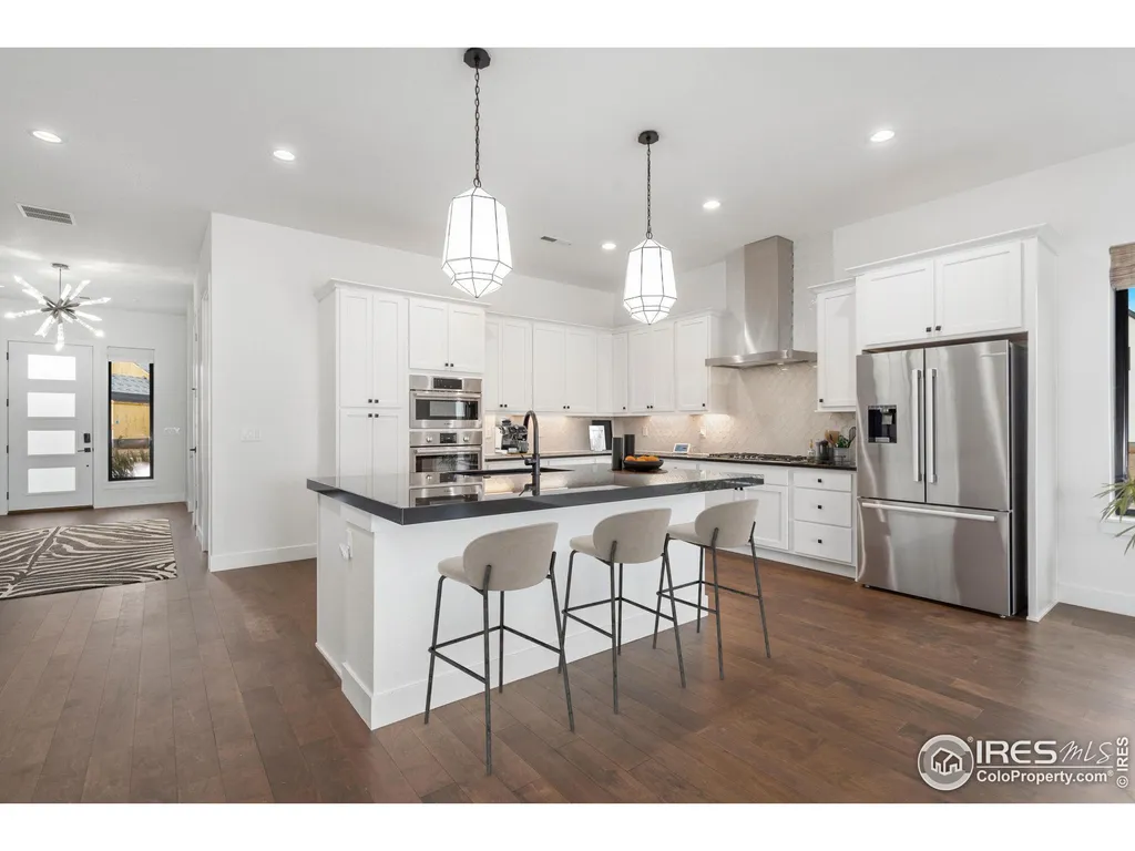 Great Water Valley living - come see this charming Ranch-style luxury patio home on the water! Large 2600 sq. ft. of living space with 3 bedrooms, 3 baths and an oversized 3-car tandem garage for all your toys. Features include a gas range with wall oven/microwave combo, stainless steel appliances, walk-in pantry, kitchen island, tankless hot water heater, central AC and beautiful wood flooring throughout. Enjoy the evenings out on the extensive patio with the gorgeous water view and the ultimate in peace and quiet. This is your chance to own your own private oasis as it also comes with lawn maintenance, trash service, snow removal so you can have the quiet enjoyment if your gone for an extended period of time. Walking and biking trails are abundant here in Water Valley and Northern Colorado.