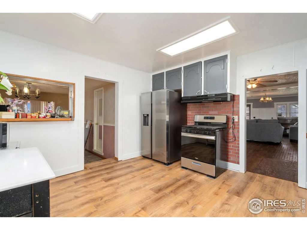 Incredible charm with tons of potential! Your new home with a huge shop sits on ~1.2 acres in the heart of Old Town Loveland. This 4 bed/2 bath home is a great mix of updated space and vintage features. From the classy kitchen with stainless appliances, to the sprawling great room, cozy den and separate dining area, you'll find plenty of elbow room and space to entertain on the main level. There, you'll also enjoy two bedrooms and a bath. Upstairs features the other two bedrooms, including the newly updated primary suite with a walk-in closet. There's plenty of space to relax in both the fully enclosed patio and an additional covered patio. Enjoy large trees and mature shrubbery in your extremely private back yard. Detached two-car garage! Included in the sale is the back parcel where you'll find the huge 55' x 32' shop with over 1,900 square feet -- and a loft for additional storage. As with many old homes, there's work to be done, but this is a terrific find for a buyer who loves lots of space, and has vision to make a wonderful property their own!